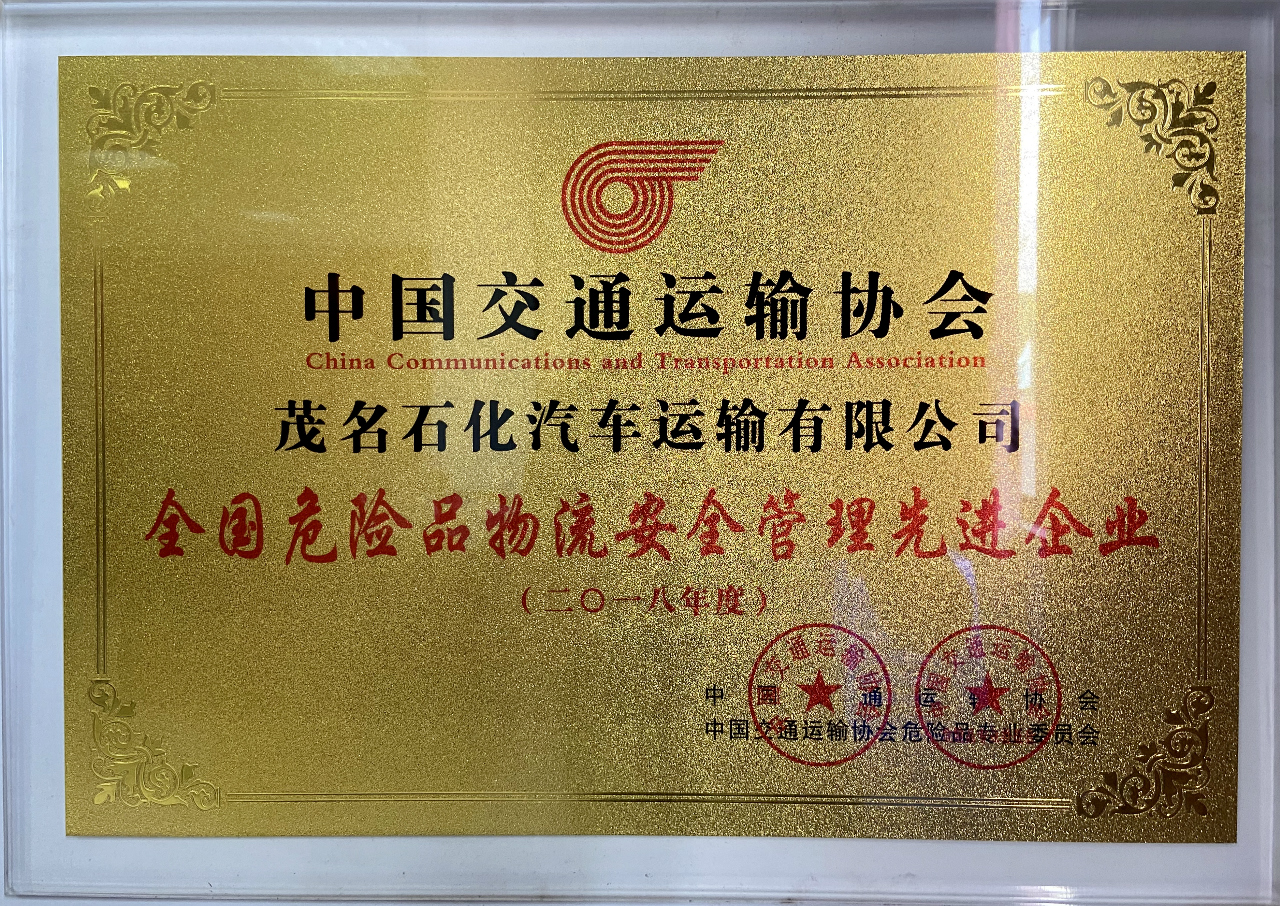 中交協(xié)危險(xiǎn)品物流安全管理先進(jìn)企業(yè)